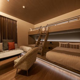 またホテル内には山に囲まれた大自然を感じながら薬草湯が楽しめる温浴施設もあり、宿泊者は無料で利用可能!国産の木材を使った木のぬくもりが溢れるプレイグラウンドなどキッズスペースも充実しています。