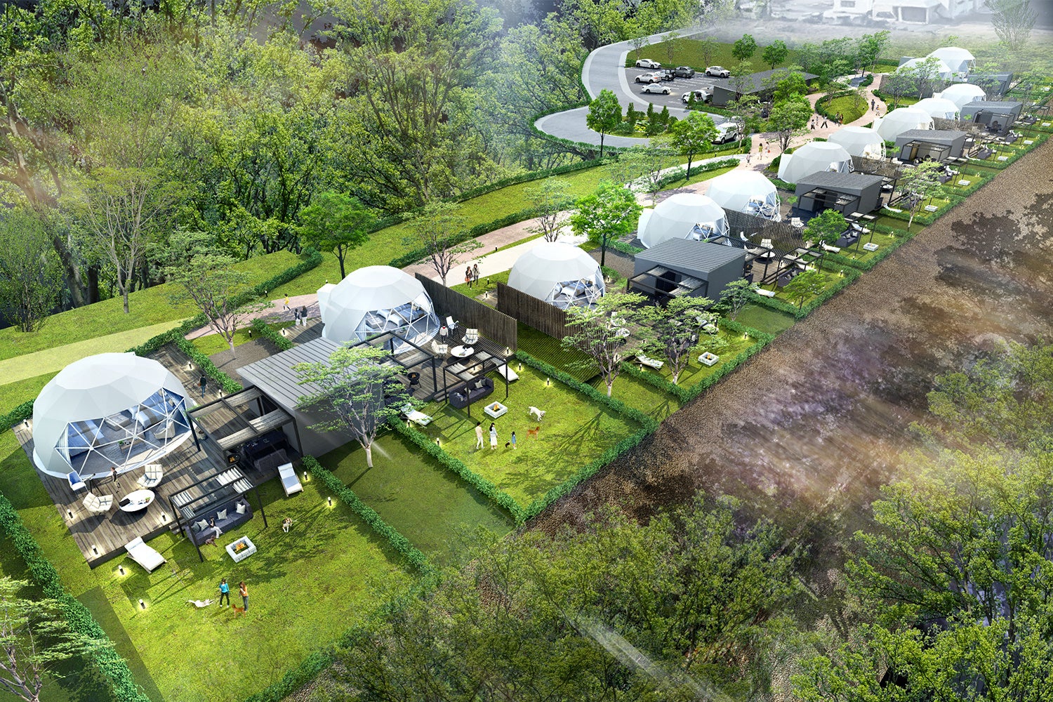 全4種類のドーム型テントは、国内最大級の直径10Mドームテント、専用ドッグラン付きのペット同伴可能なドームテント、専用ジャグジー付きのドームテントなど大阪府初となる仕様を備えたテントとなります!